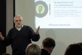 Un saldajā - režisors un runas pedagogs Pēteris Krilovs humoristiskā manierē analizēja Viljama Šekspīra lugas "Jūlijs Cēzars" Bruta uzrunu tautai uzreiz pēc tam, kad viņš kopā ar citiem senāta locekļiem bija nogalinājis Cēzaru. Runā ir jāieliek formula, jāsaliek uzsvari un jāizlīdzsvaro emocijas ar saprātu. Bet visam pāri - godīgums un gudrība. Runas noslēgumā Pēteris izvilka atklātības kārti, par kuru varat uzzināt, noskatoties viņa dokumentālo filmu "Uz spēles Latvija".