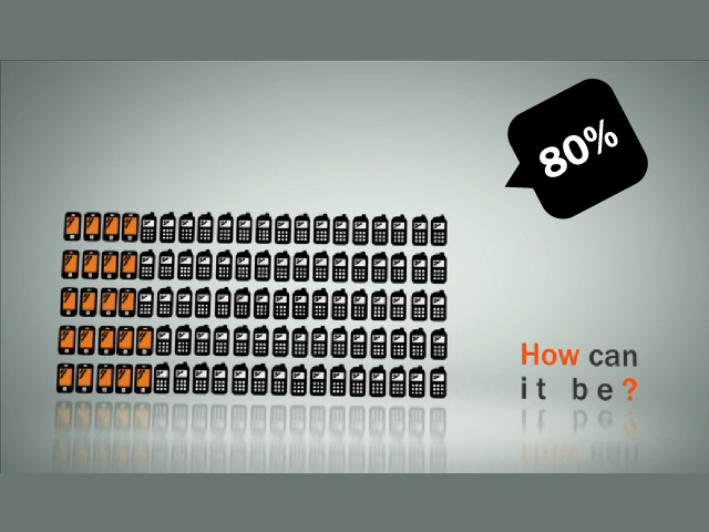 Pēdējos gados ražotāji aktīvi piedāvā viedtelefonus un to maģiskās funkcijas. Taču 80% joprojām izvēlas parastus mobilos telefonus, jo viņiem svarīgākā funkcija ir piezvanīt. Diemžēl reklāmas nestāsta, kā ar viedtelefonu var piezvanīt, un pats aparāts neizskatās zvanīšanai draudzīgs. Tam pat pogu nav. Mūsu uzdevums bija ļaut cilvēkiem pamēģināt zvanīt ar viedtelefonu. Tāpēc mēs ieviedojām viedtelefona simulatoru banerī, ar kuru ikviens var piezvanīt sev.