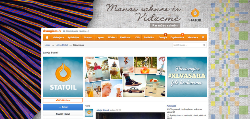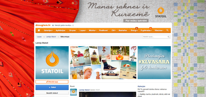 Interaktīvā ādiņa portālā Draugiem.lv tika izveidota ar mērķi popularizēt Vispārējo latviešu Dziesmu un Deju svētku laiku, iezīmējot Statoil Fuel & Retail Latvia iesaisti šajos svētkos, kā arī ar mērķi uzzināt - kur slēpjas Jūsu saknes?