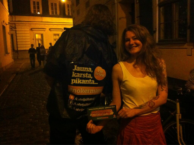 Lai iegūtu kuponu, ar kuru saņemt karstbageti jebkurā Statoil DUS bezmaksas, interesentam Muzeju nakts laikā bija jāatrod īpašie #Nokermani "kurjeri", kuru muguras rotāja akcijas logo, ar tiem jānofotografējas un sociālajos medijos ievietotajam foto jāpievieno hashtag #Nokermani.Akcijas mērķis bija pievērst pēc iespējas plašākas auditorijas ievērību Statoil karstajai un pikantajai karstbagetei, aicināt to nogaršot, kā arī par to pastāstīt saviem sociālo mediju sekotājiem.